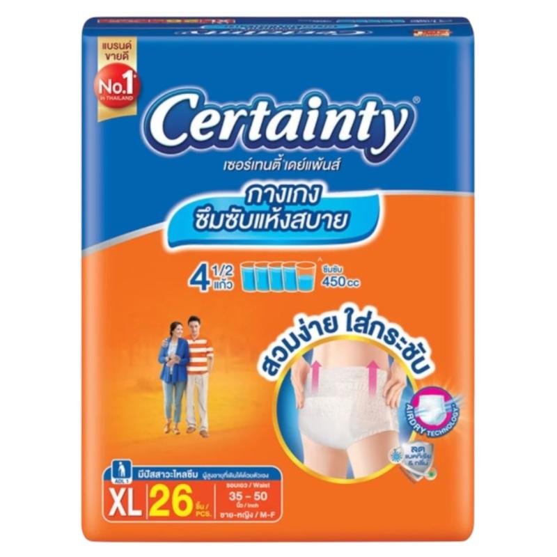 เซอร์เทนตี้ เดย์แพ้นส์ กางเกงผ้าอ้อมผู้ใหญ่ ซึมซับปกติ ขนาด XL จำนวน 26 ชิ้น